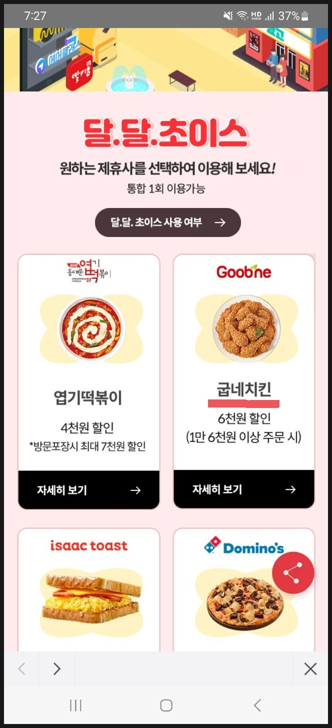- 달달초이스 → 음식 할인