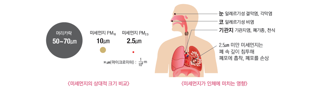 미세먼지보다 더 큰 입자로 호흡기에 직접적인 자극을 줍니다.